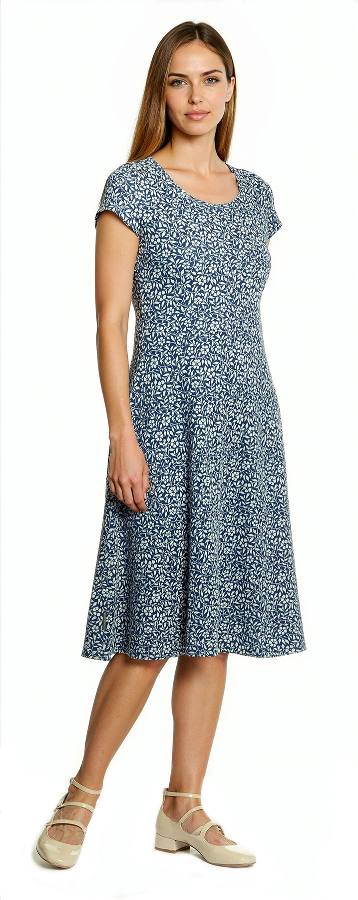 Bomullsklänning Katrin Vinca blåvit XL