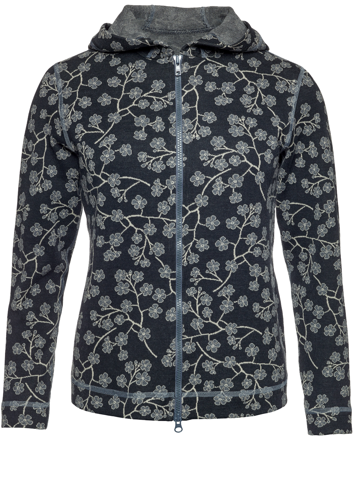 Kofta med blixtlås i 82% bomull 18% modal. Kort modell med blixtlås och rund luva. Längd på blixtlås 55 cm.