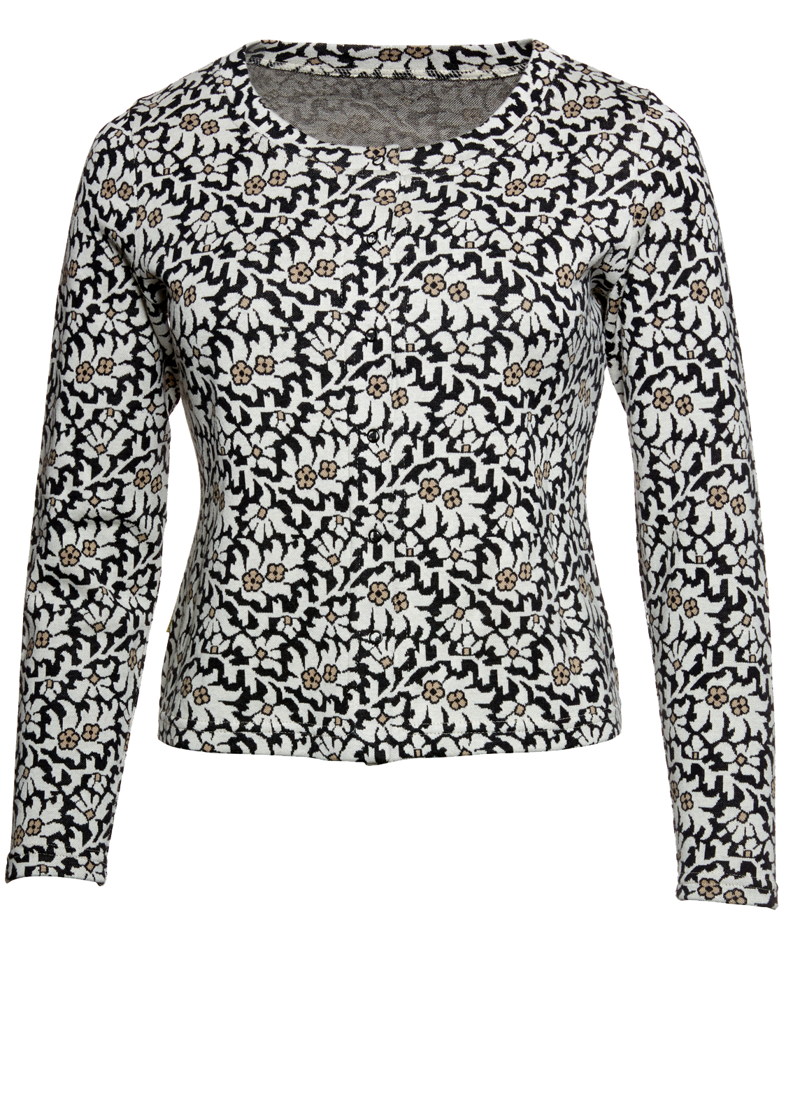 Kofta i 82% bomull, 18% modal. Kort modell med tryckknappar fram.