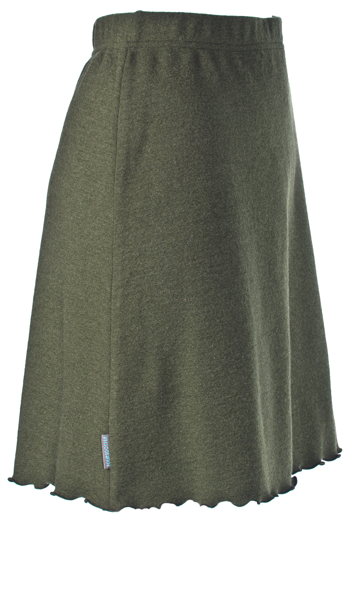 Tunn, mjuk, smidig och mycket skön kjol i 100% fin merinoull. Något utställd modell med krusigt avslut. 50 cm lång.