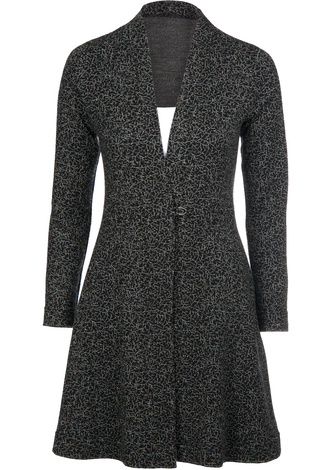 Tunn, mjuk, smidig och mycket skön kofta i 100% fin merinoull. Lång modell med 1 hake/hyska fram. Lita aldrig på skärmen när det gäller färg. Beställ gärna ett tygprov först.