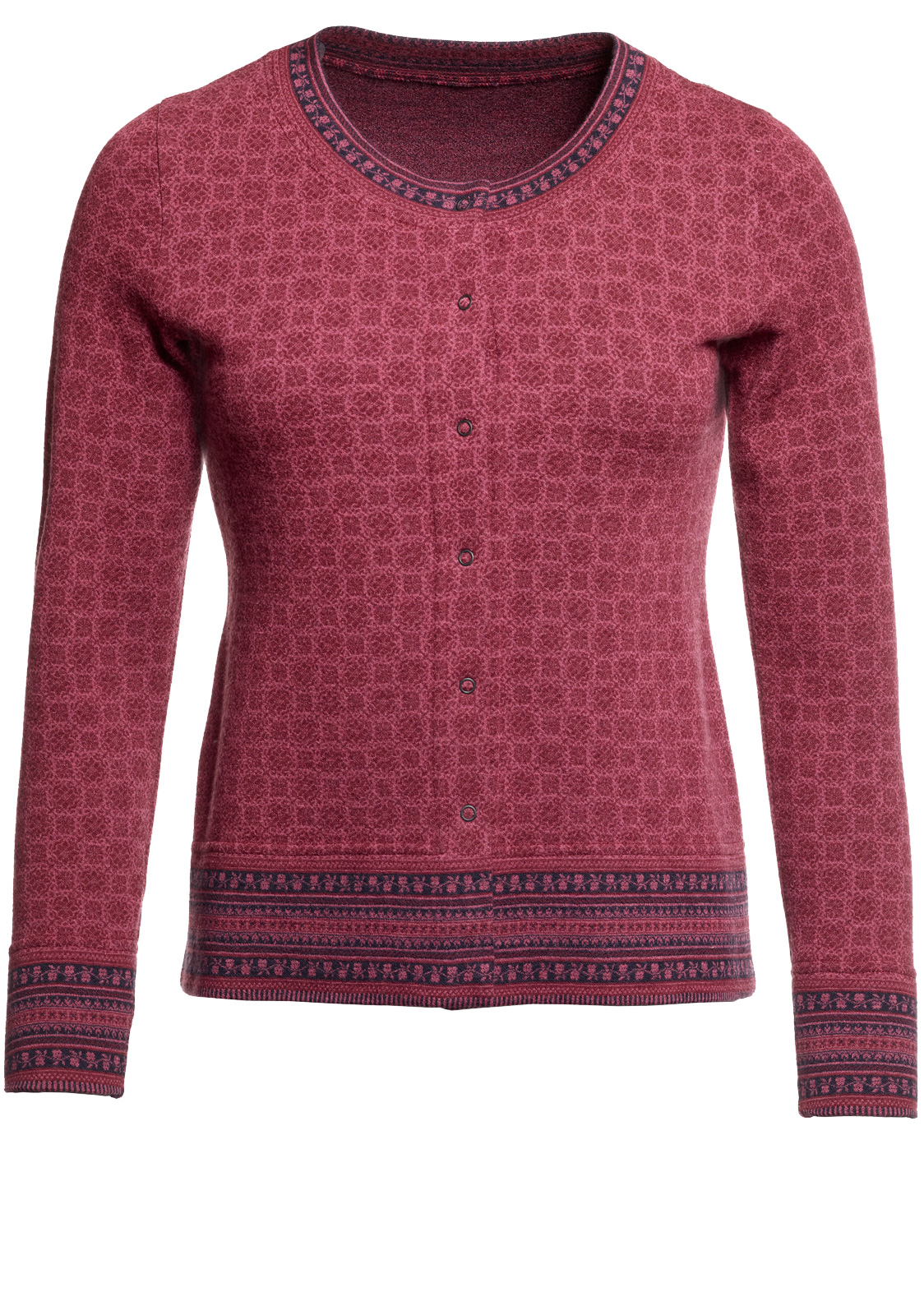 Tunn, mjuk, smidig och mycket skön kofta i 100% merinoull. Kort modell med tryckknappar fram. Lita aldrig på skärmen när det gäller färg. Beställ gärna ett tygprov först.