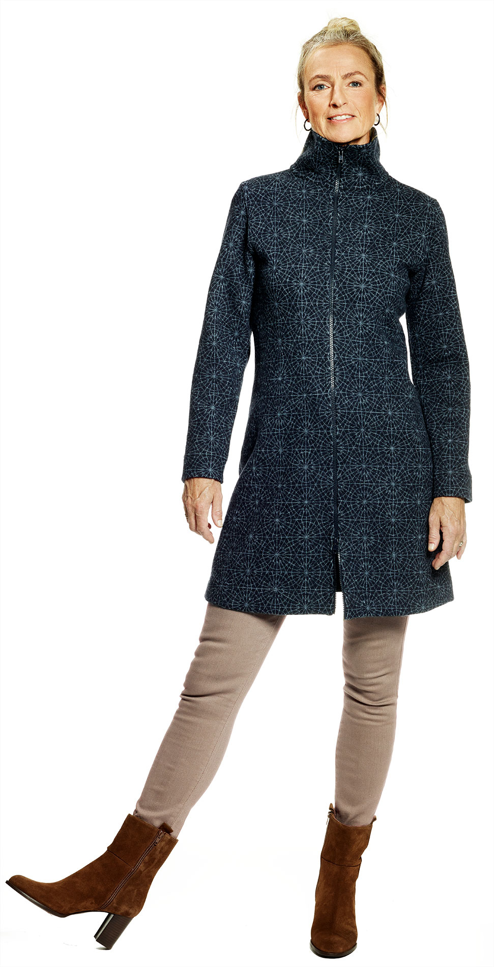 Tröja/kappa med tvåvägs blixtlås. Lång modell med stor krage i 100% filtad merinoull. Användbar året runt; inomhus på vintern för den frusne, som ytterplagg vår och höst och lagom för en sval sommarkväll. Lita aldrig på skärmen när det gäller färg. Beställ gärna ett tygprov först.